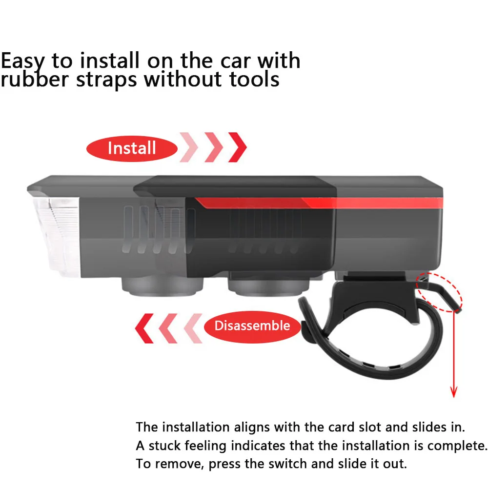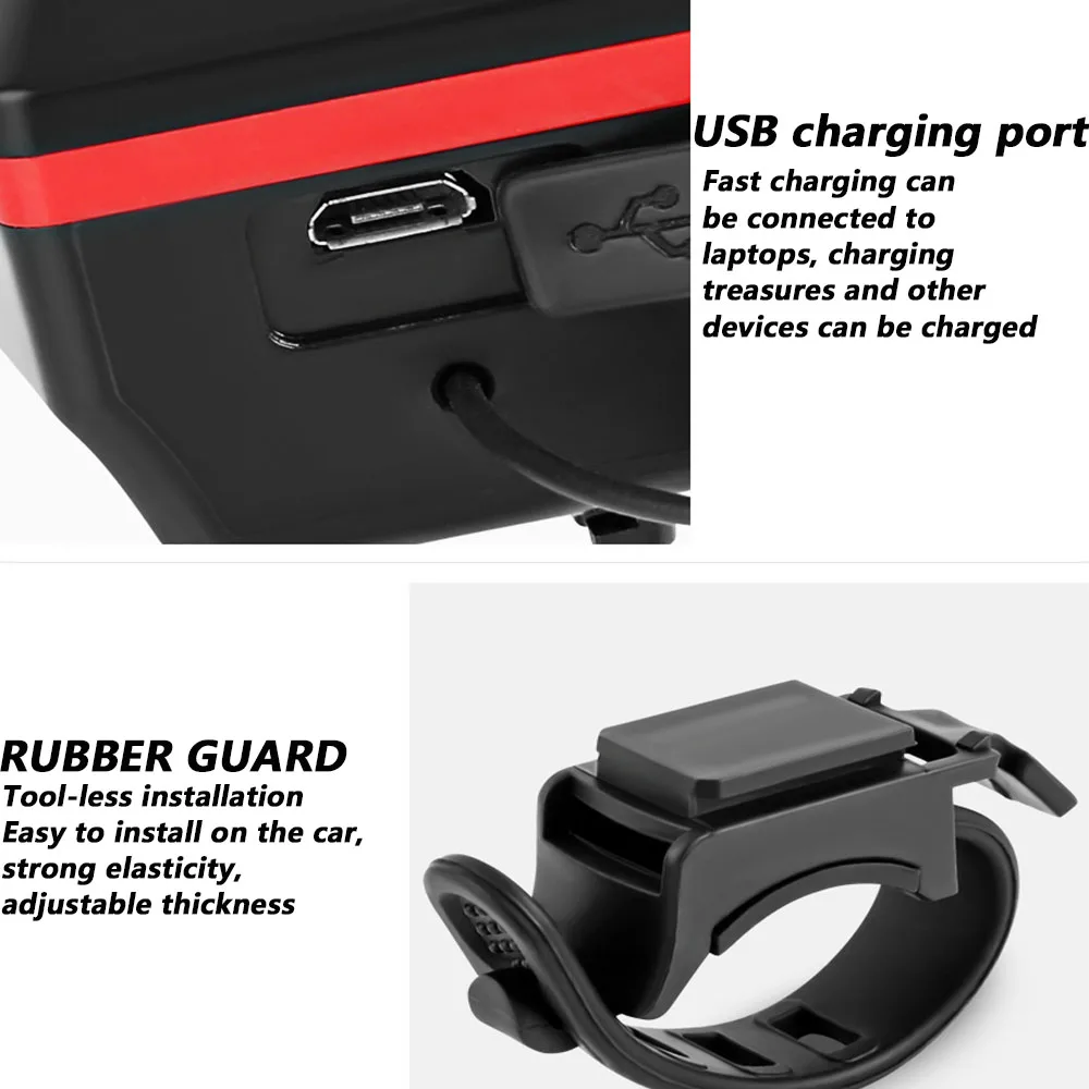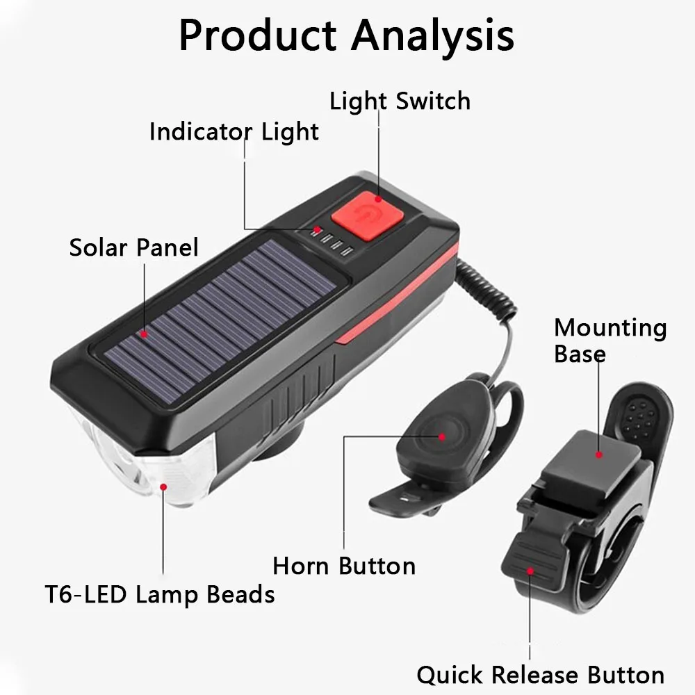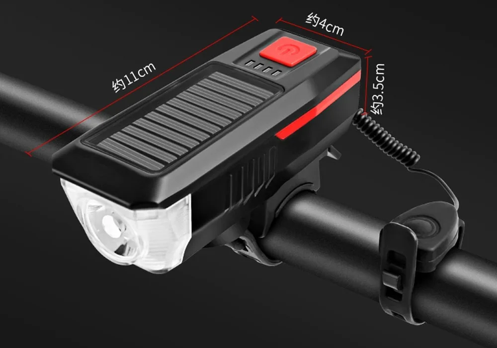 This Bicycle Horn Lamp is a flashlight integrating horn, USB and solar charge, which is convenient in use, especially suitable for dealing with emergencies during camping trip or power cut.