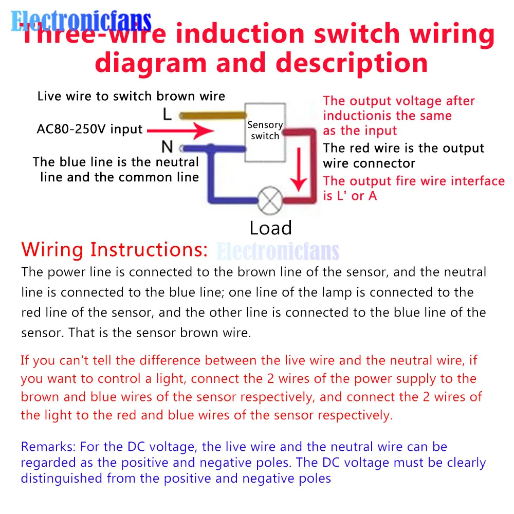 2.Switch on the power; the controlled load and indication lamp both are not working. Preheat 30 sec later, the load and indication lamp should be turned on synchronization. In the absence of no inductor signals, the load should be stopped working within 5-30sec, the indicator lamp is turned off.