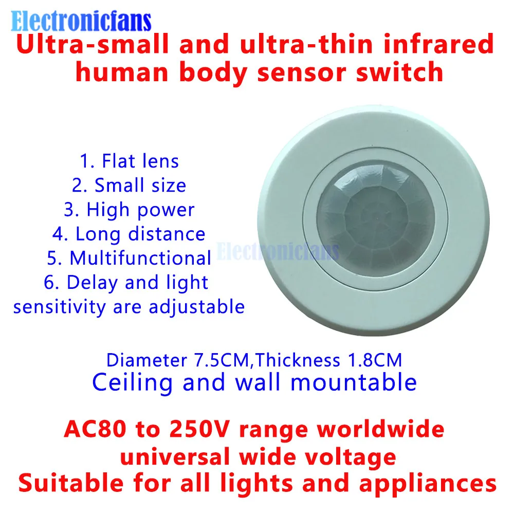 AC110-240V 360 Degree PIR Infrared Motion Sensor 220V High Sensitivety Human Motion Sensor Switch for Home