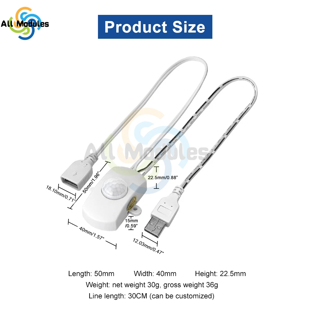 DC 5V/12V/24V USB Body Infrared PIR Motion Sensor Switch Human Motion Sensor Detector Switch For LED Light Strip Automatic