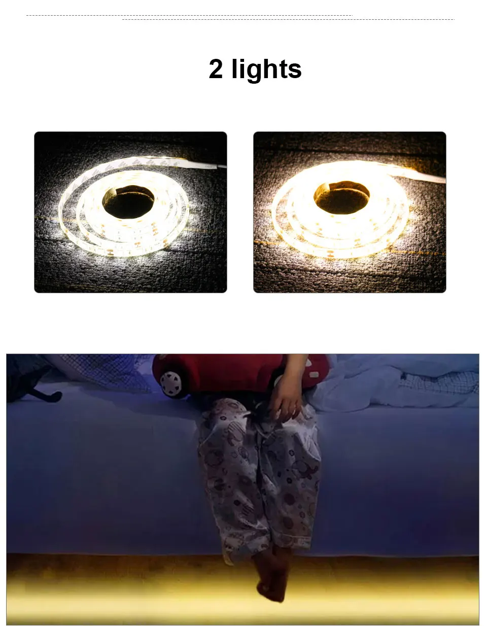 Open and unfold the LED strip and connect the sensor and adapter as shown.