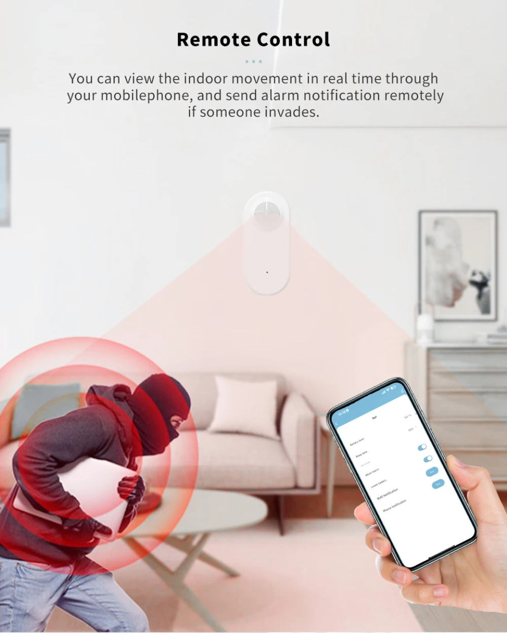 【Emergency Alert Push Function】When there is movement detected, the alert notifications will be pushed to your phone, be aware of what’s happening at home even when you’re away.