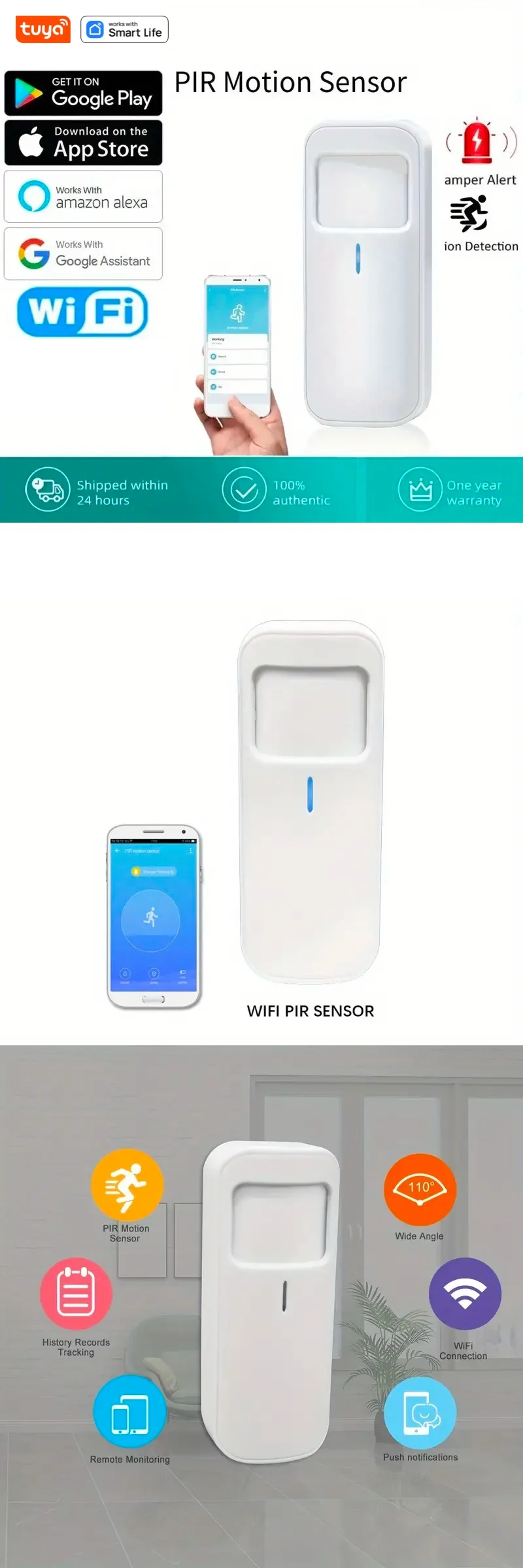 The sensor features a bracket with grip that can easily install on wall. It can install on sitting room, corridor often the place that somebody ambulate. It’s location can be changed at any time for ultimate comfort and convenience. â—†No need any gateway controller, Detection range is 8-10 meters and viewing angle is 110 degree.