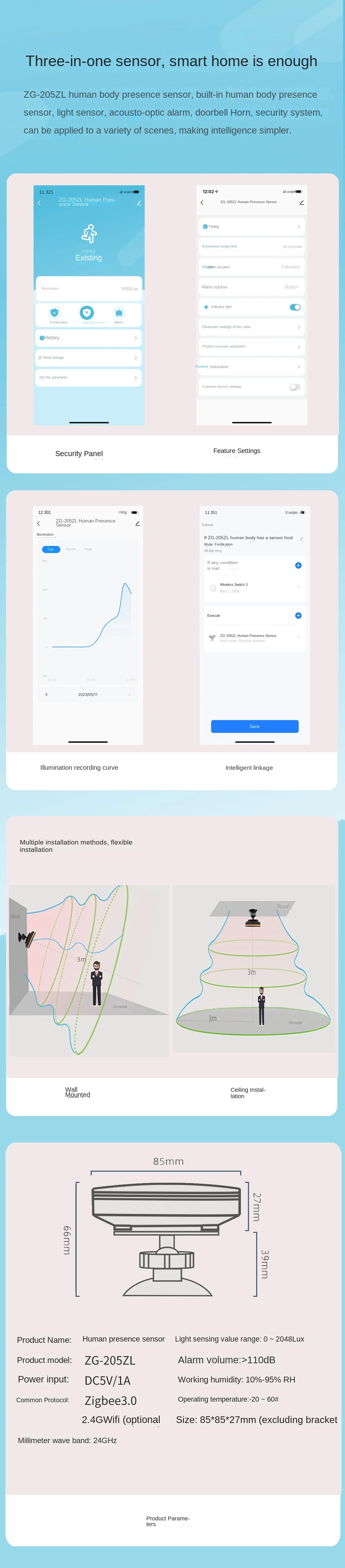 - Model Number: Tuya Wifi/Zigbee 3IN1 Human Presence Sensor