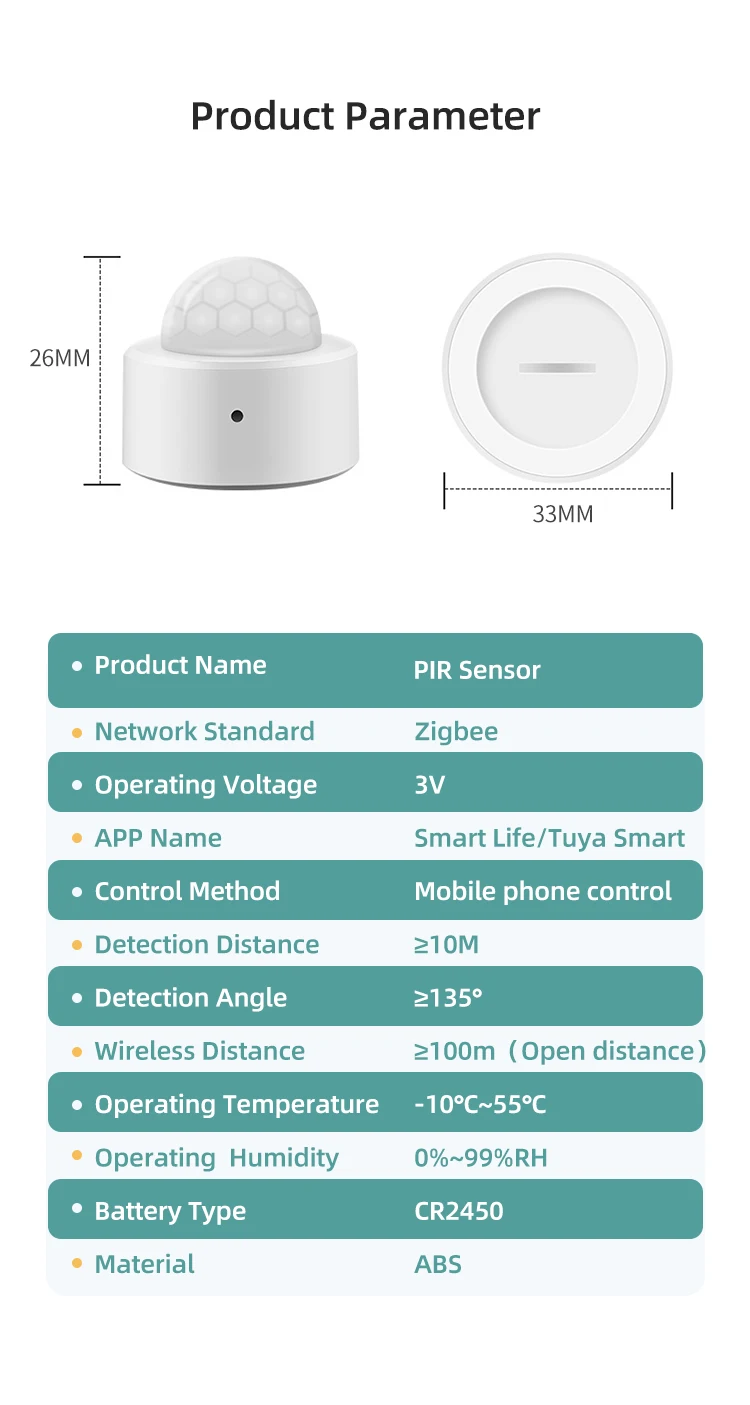 - Wireless Producol: Zigbee/433MHz(Optional)