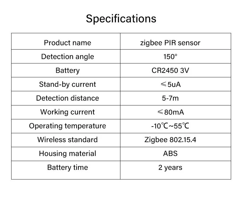 - Model Number: Zigbee PIR Motion Sensor Detector