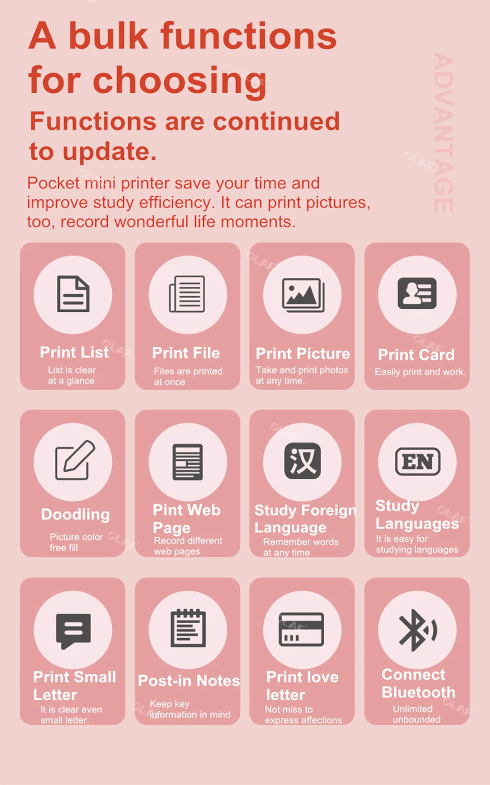 7:Connection mode: Bluetooth wireless inkless black and white printing