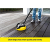 The T300 Surface Cleaner tackles large surface cleaning tasks in no time. Comfortably clean decks, garage floors, driveways and patios with ease. Reduce your cleaning time by up to 5X! The T300 Surface Cleaner cleans large outdoor surfaces quickly and efficiently. With a large 11″ diameter cleaning head, variable pressure dial and 32″ wand extension, the T300 helps you quickly and comfortably clean decks, garage floors, driveways and patios. An integrated splash guard keeps you dry as you clean. The two spinning nozzles spray at a fixed height, delivering professional and even cleaning results. NOTE: Compatible with Karcher K2, K3, K4 and K5 electric pressure washers. Not compatible with K1700, K1800, K1900, K2000.