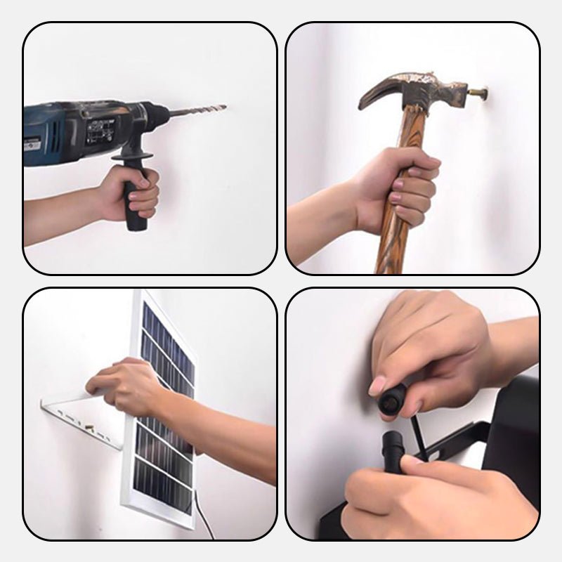 The solar light requires no wiring, making installation hassle-free. It comes with wall screws and solar panel brackets, allowing for direct installation on walls. This ensures quick setup and flexibility in choosing the optimal location for lighting.