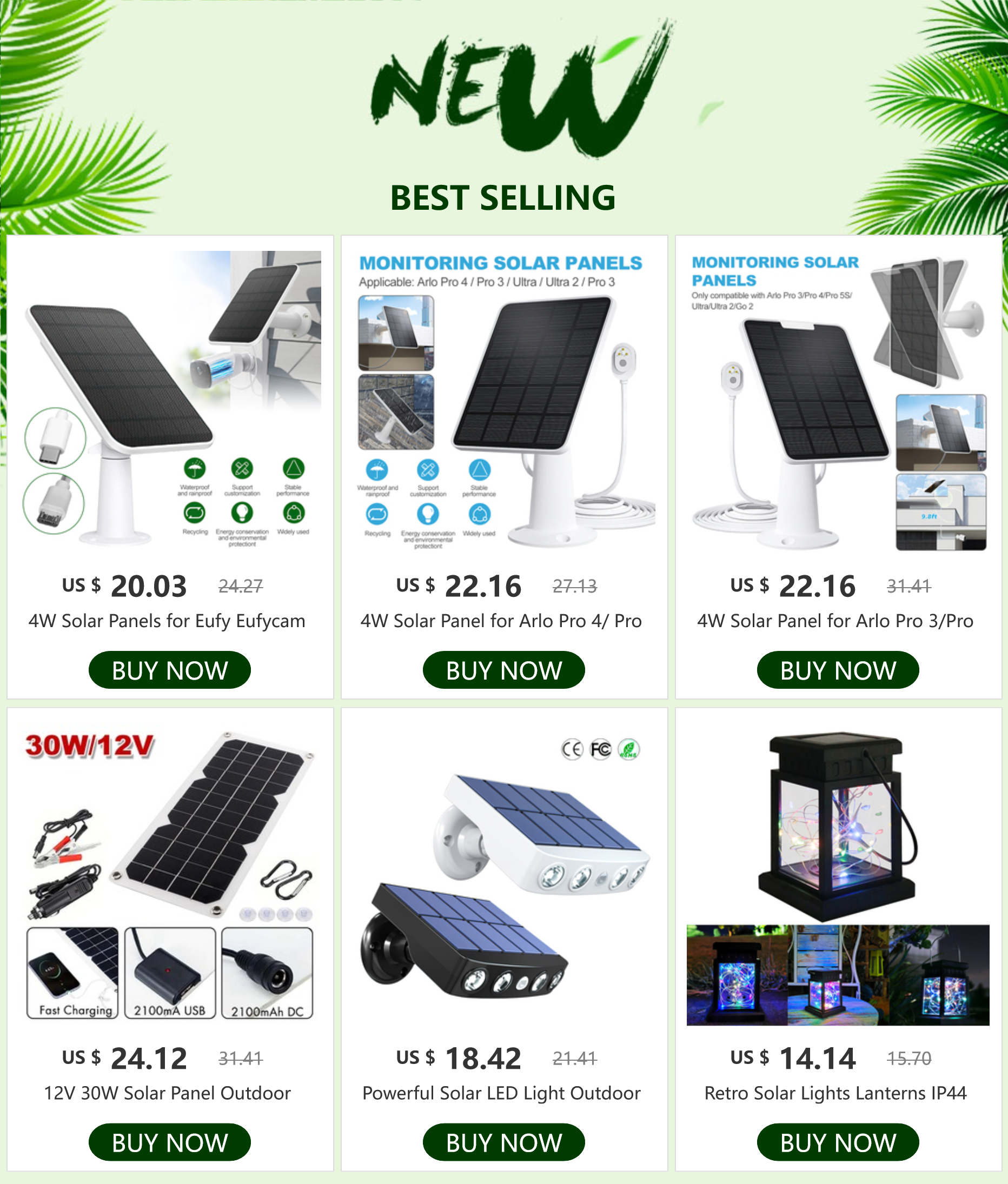 FLEXIBLE ADJUSTMENT: secure mounting bracket can adjust in 360 degree to capture the sunlight in different seasons; Continuous power your camera in maximum efficiency.