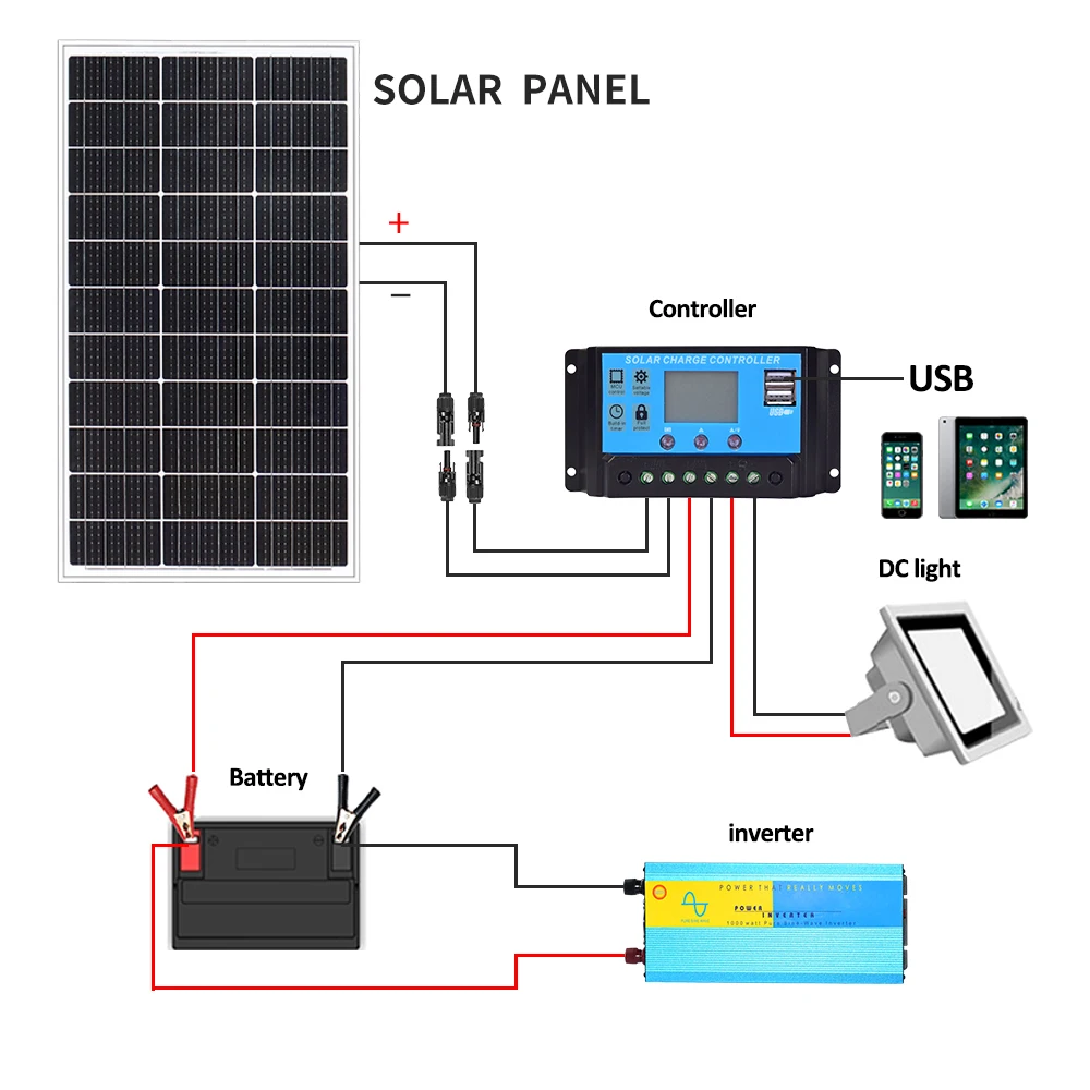 - Solar Panel 12V: Solar Panel 100W