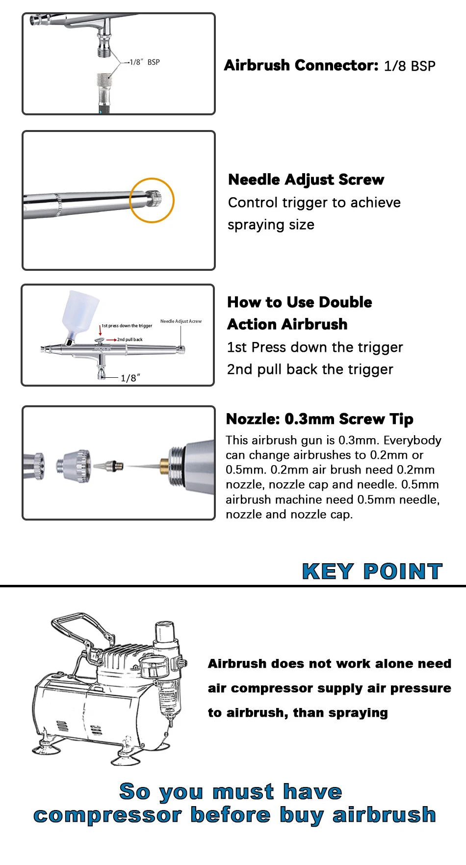 Double Action Gravity Feed Airbrush Set 0.3mm Spray Gun with 20/40CC Cup and Connector and Repair Wrench for Nail Art Cake Decor
