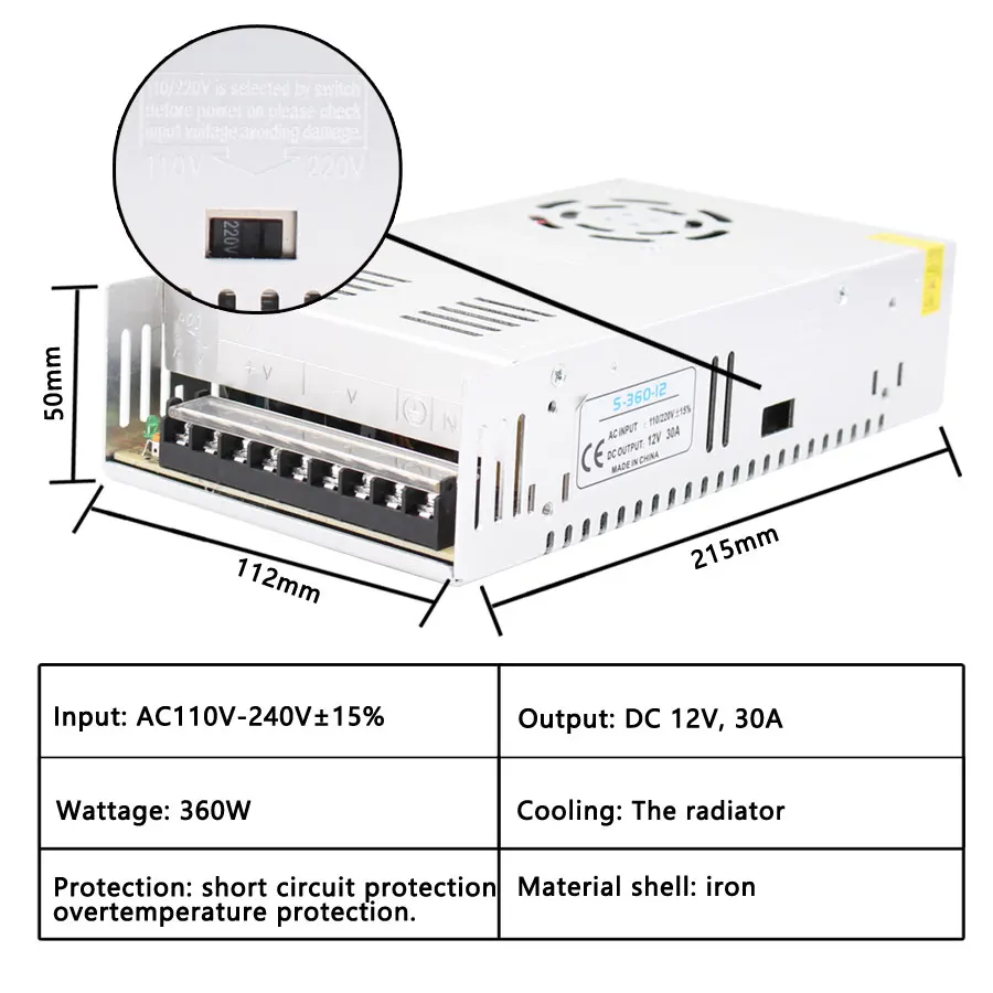 - Feature 5: Power Adapter 12V 1A 2A 3A 5A 6A 8A 10A 15A 20A 25A 30A 12 v Volt