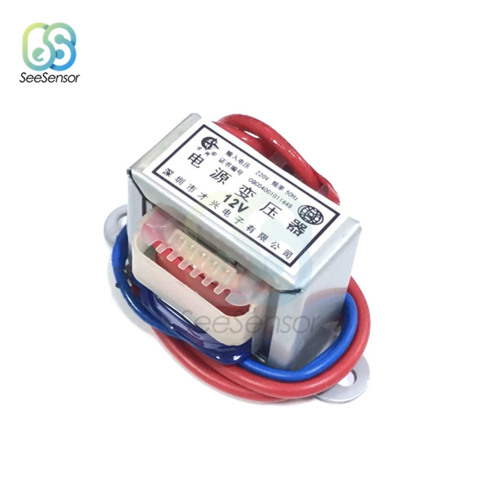 AC 220 to AC 6V 9V 12V Output Voltage 1W EI Copper Core 50Hz~60Hz Single Voltage 2 Line Copper Power Transformer