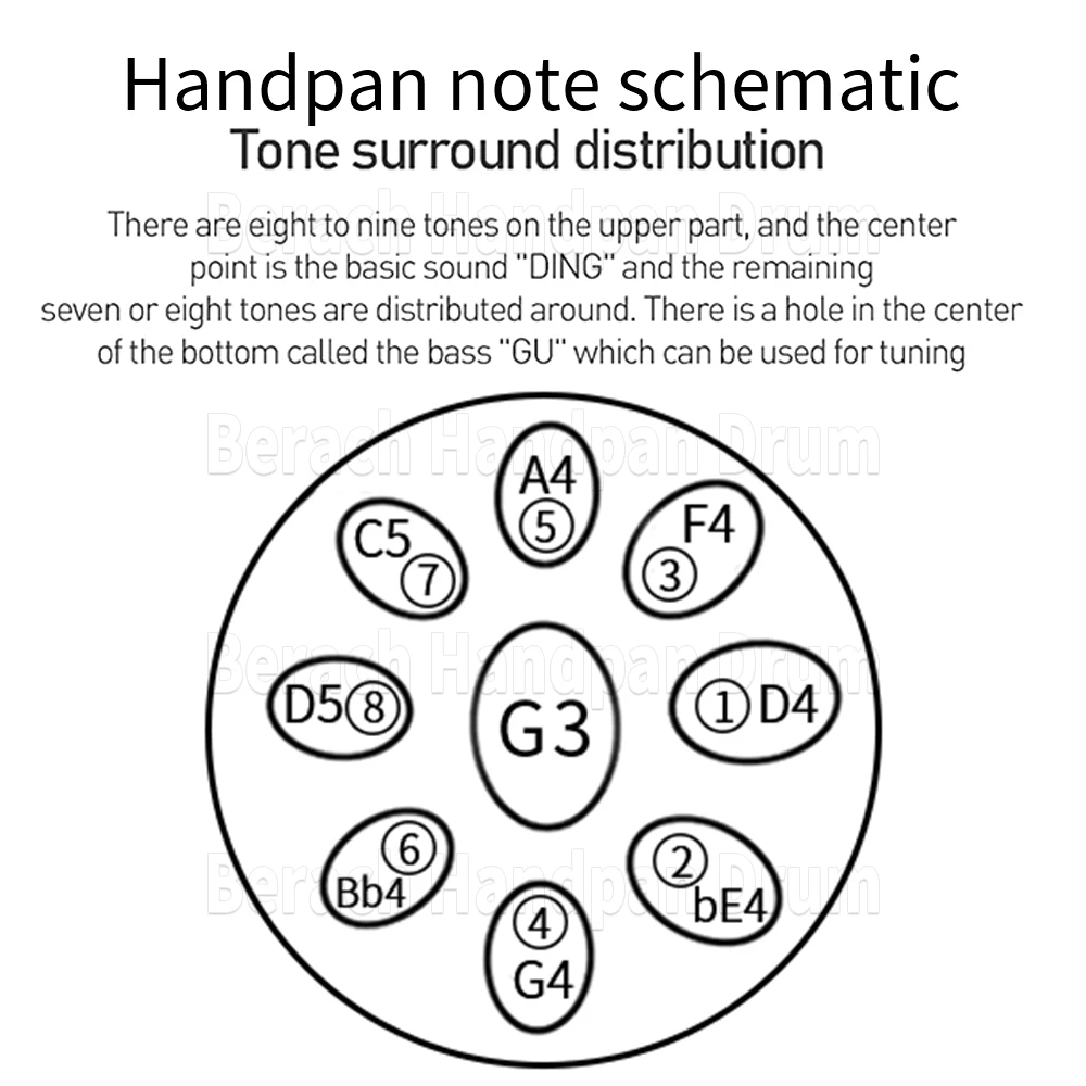 【Handmade craftsmanship】♬: Our handpan drums are all hand-hammered tuned, they will leave slight uneven marks, which are fine handmade traces. The tuner uses countless strokes to make every note accurate and have obvious hammer marks, which is normal.