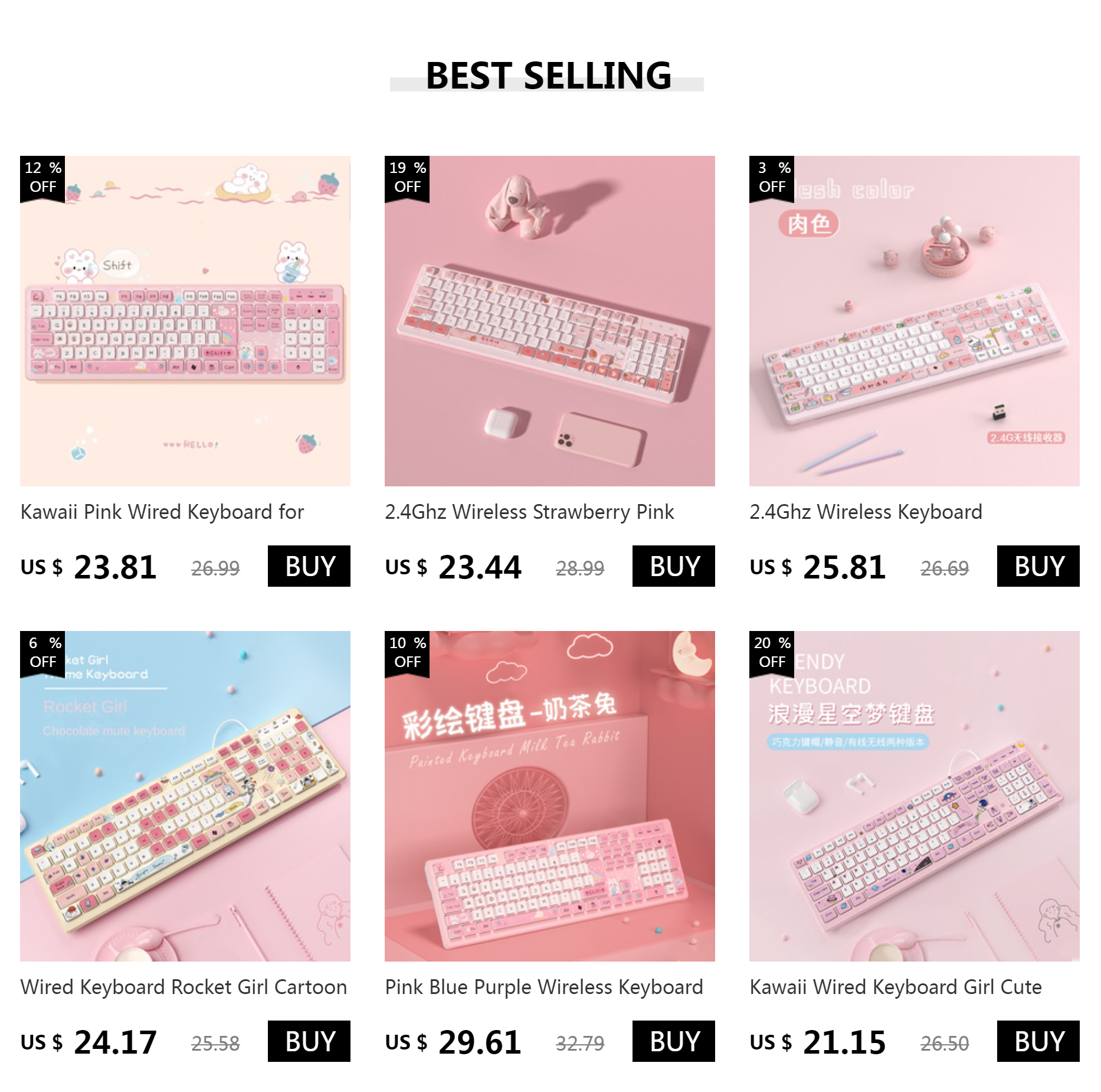 ZRE-AEKBRD 2.4Ghz Wireless Strawberry Pink Wired Keyboard Laptop Wireless Keyboard Cartoon Cute Chocolate Bluetooth Keyboard 104 Keys