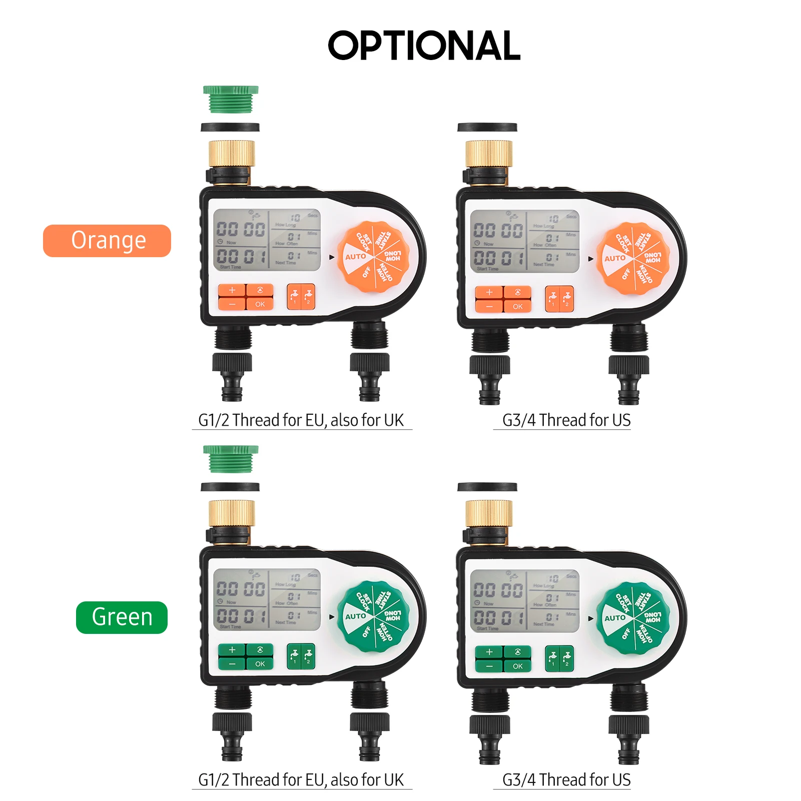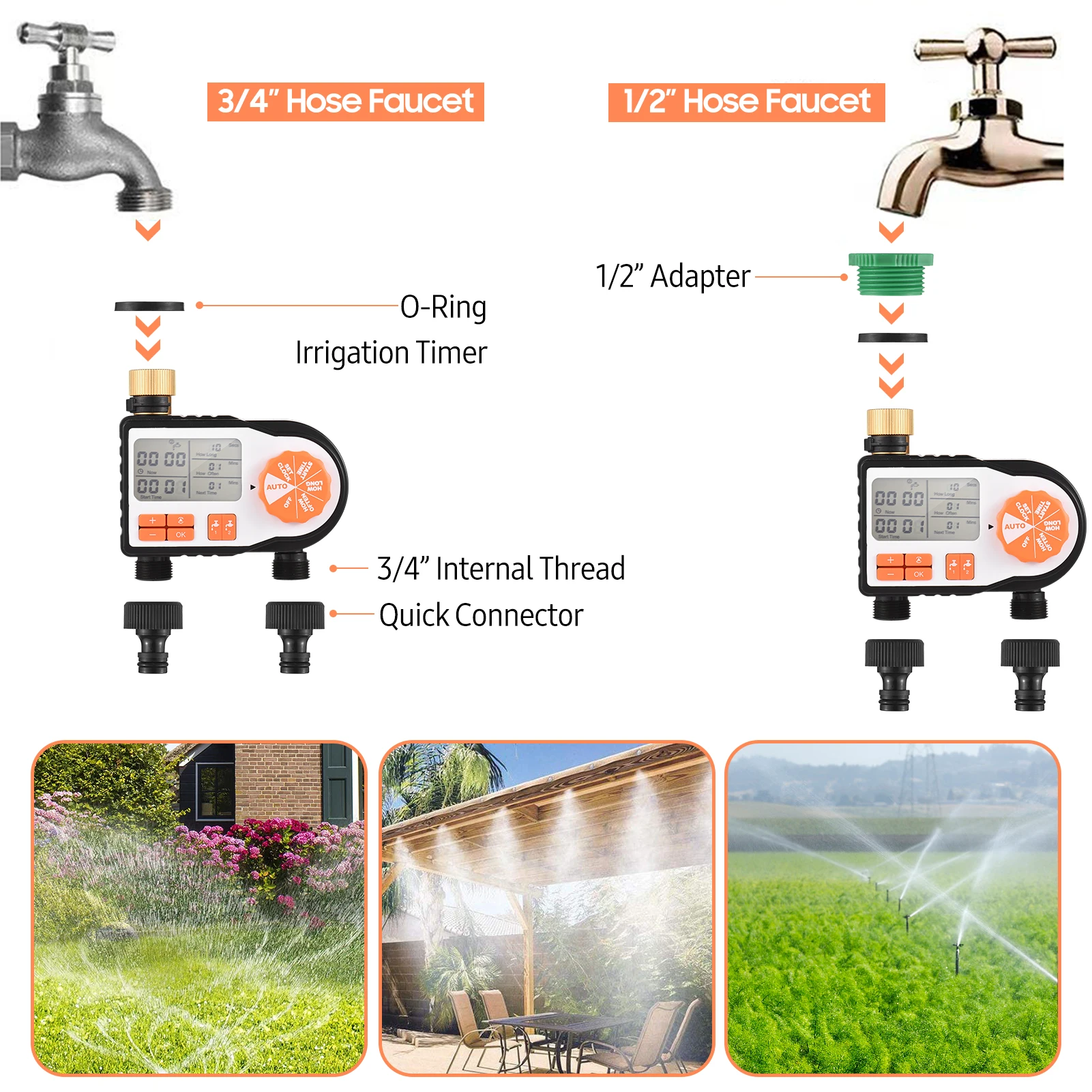 Automatic watering timer can save water and time, which is eco-friendly and efficient. With 2 hose connectors, programs can be set up independently, more humanized.