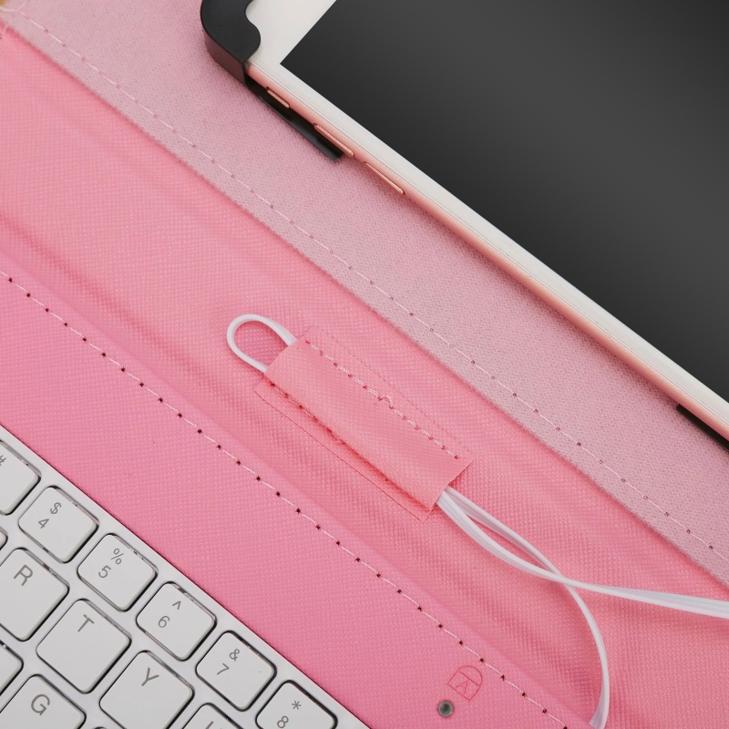 Built in stand securely holds your cellphone hands free in a perfect angle for typing or watching movies.