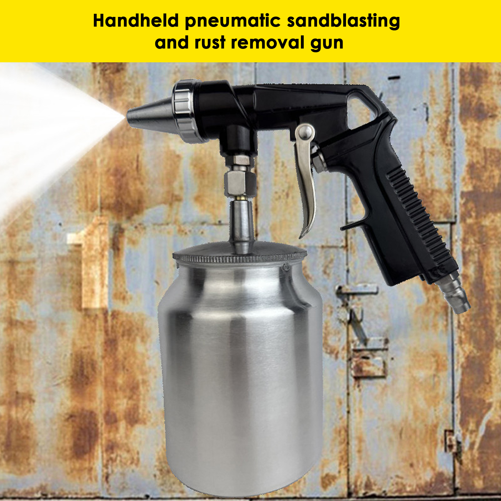1000ml Handheld Pneumatic Sandblaster 8bar Mini Aerodynamic Spray Gun with Nozzles Anti-rust Sand Blasting Power Tools Kit